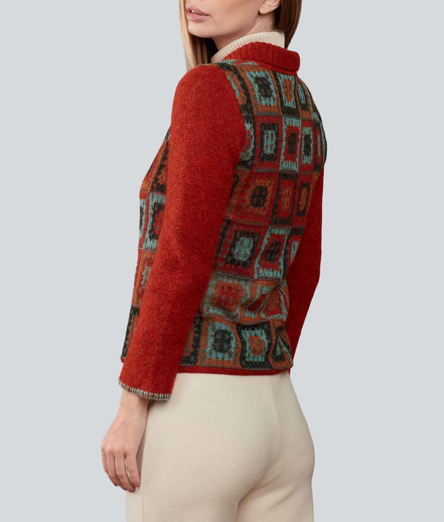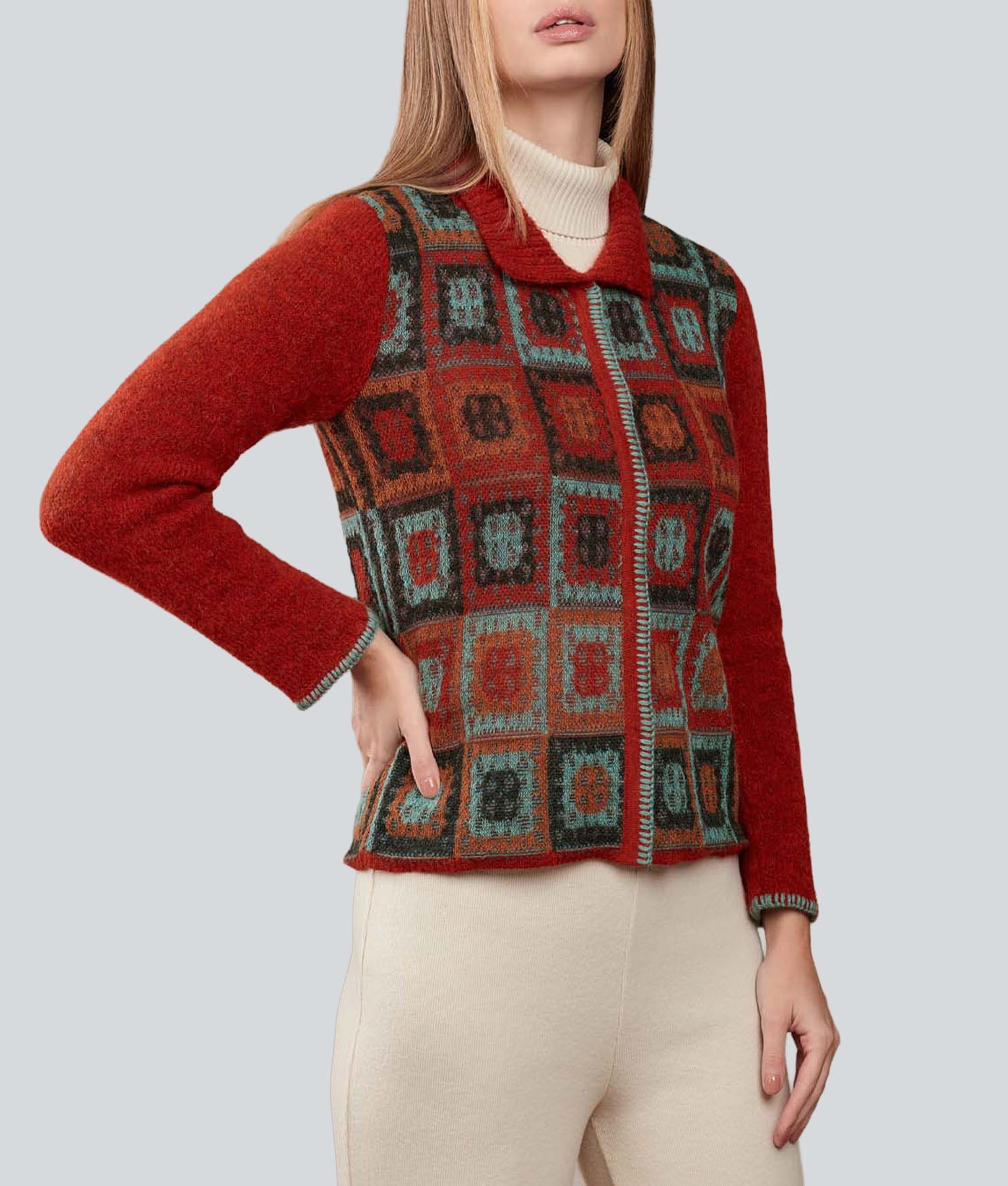 Cardigan made of 87% Baby Alpaca, 9% Mohair, and 4% Nylon. Soft, lightweight, and high-quality fabric. Loose design with geometric details, versatile and elegant for any occasion. Fine finishes that guarantee comfort and lasting style.