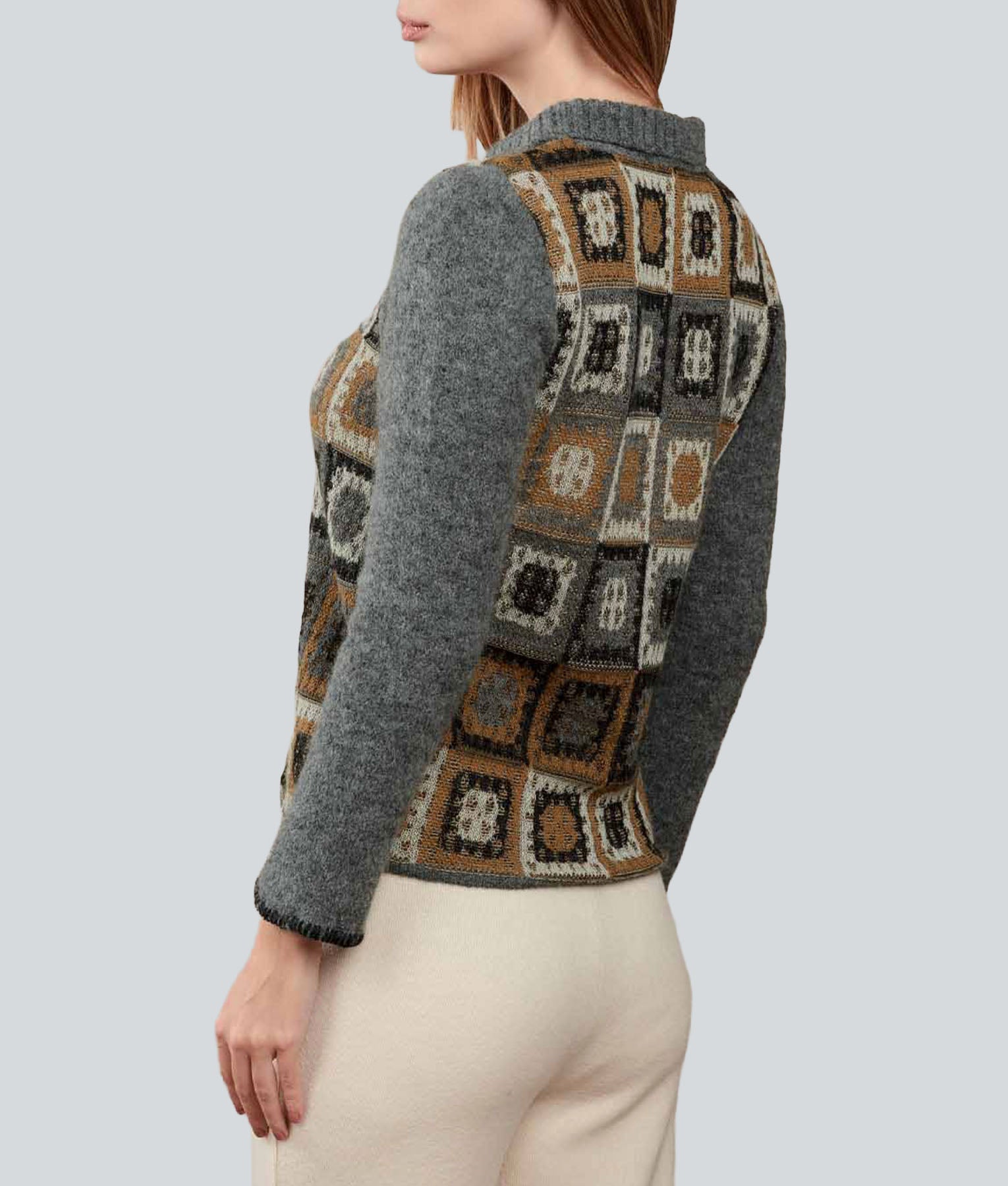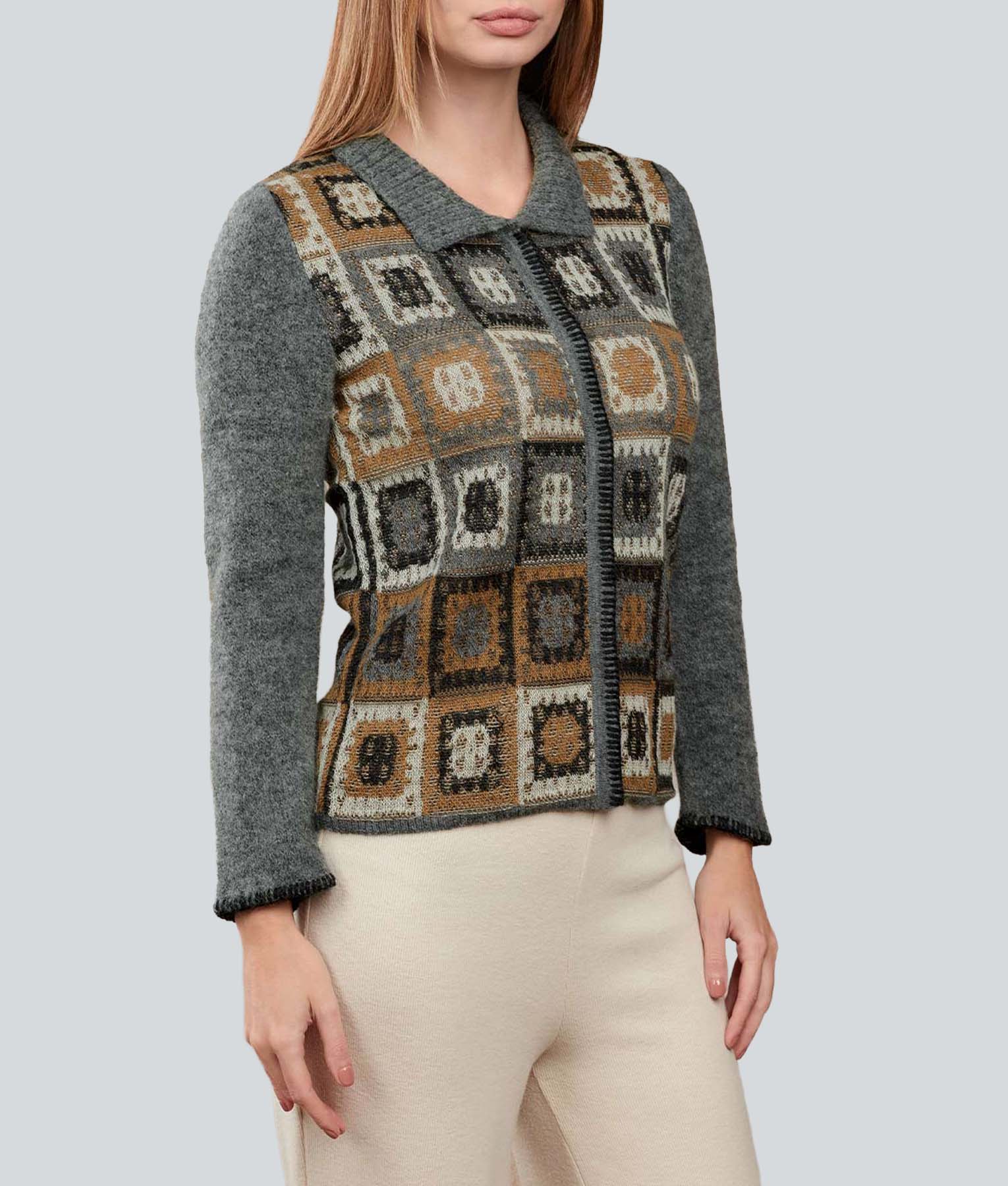 Cardigan made of 87% Baby Alpaca, 9% Mohair, and 4% Nylon. Soft, lightweight, and high-quality fabric. Loose design with geometric details, versatile and elegant for any occasion. Fine finishes that guarantee comfort and lasting style.