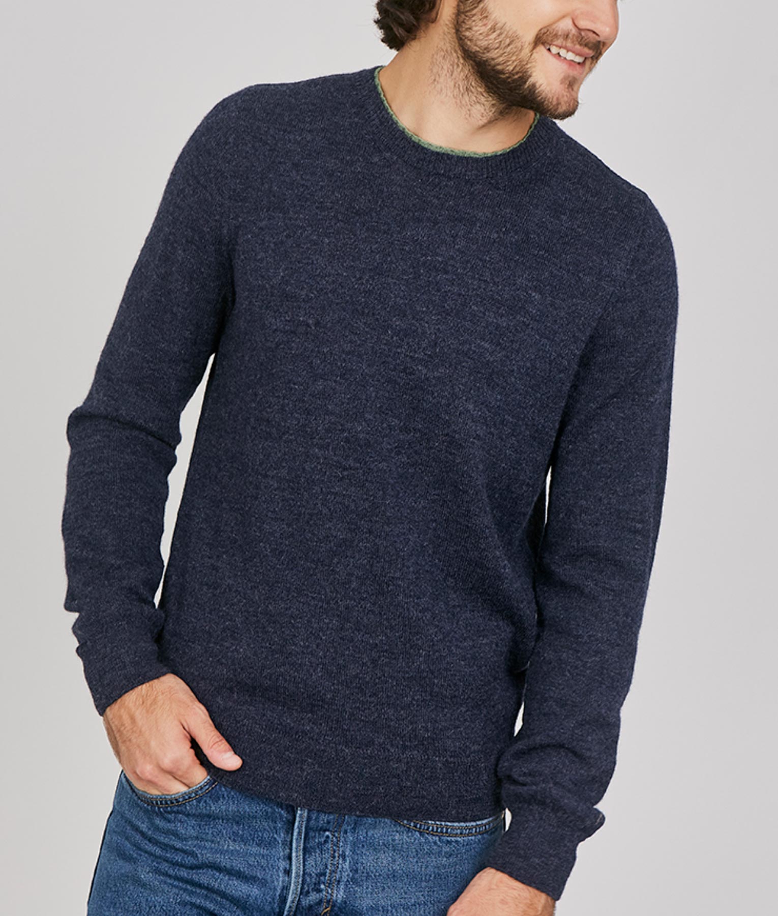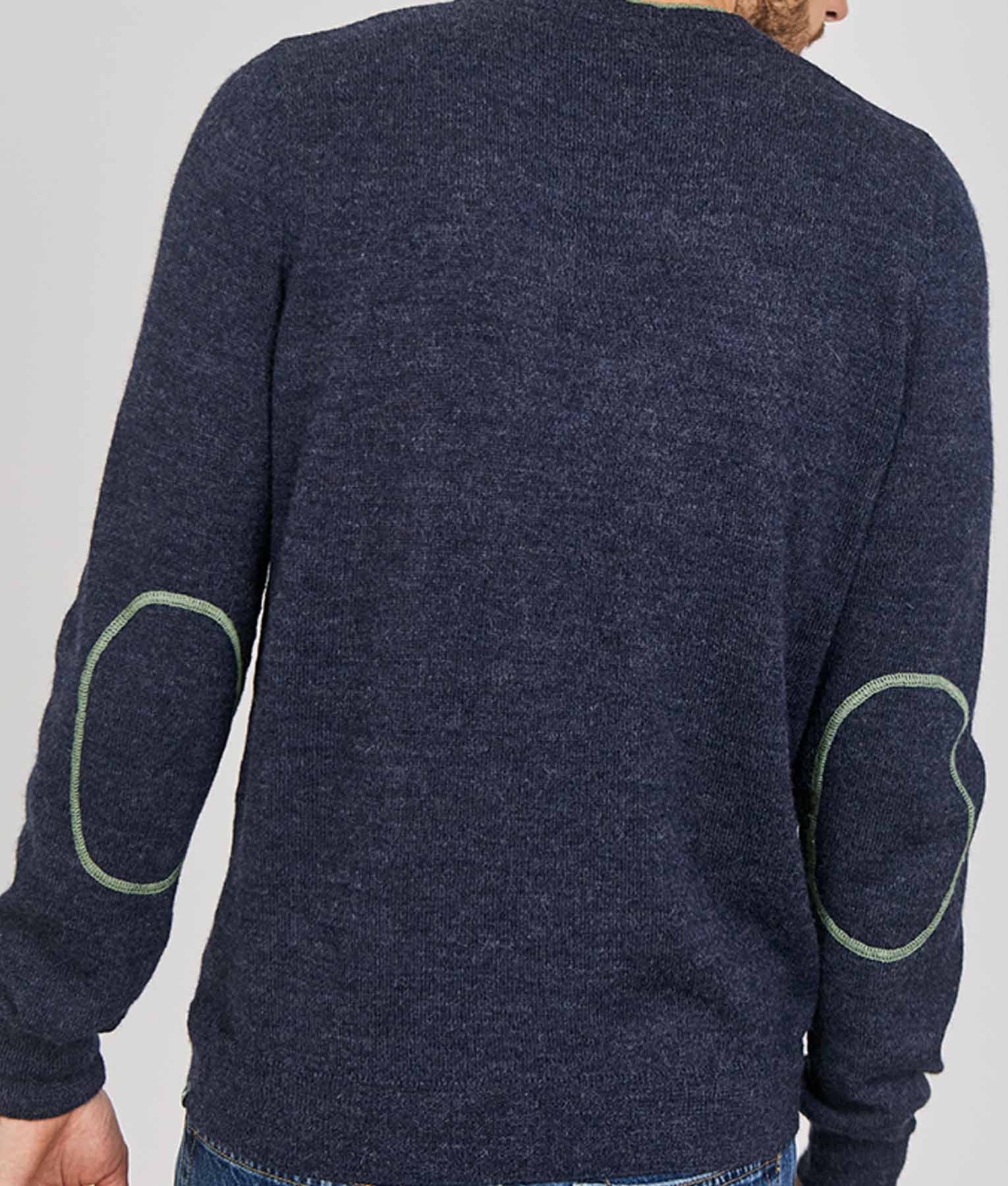 Sweater made of 100% baby alpaca. Soft, warm and lightweight fabric of superior quality. Versatile and elegant design with reinforced elbows, ideal for any occasion and season.