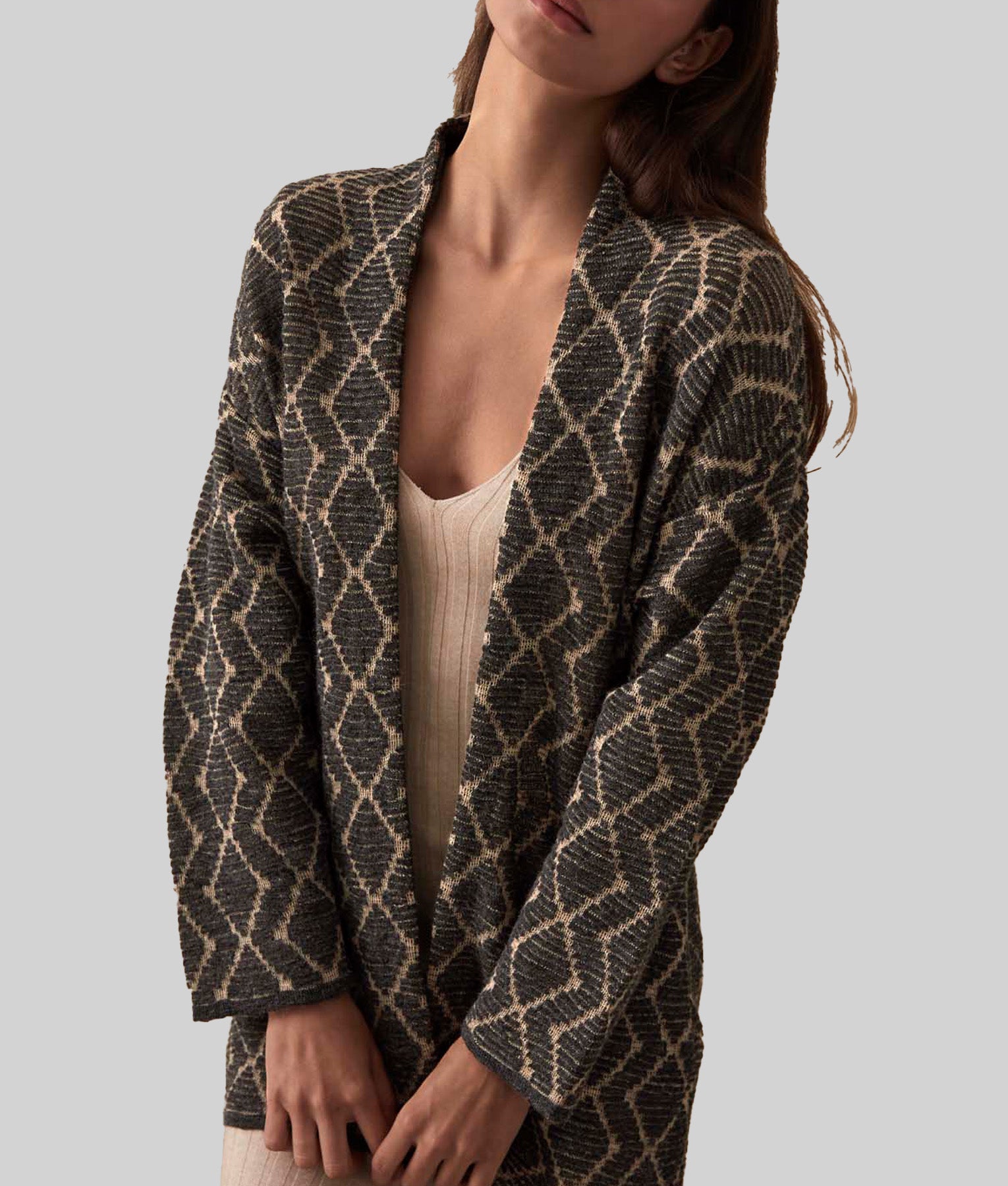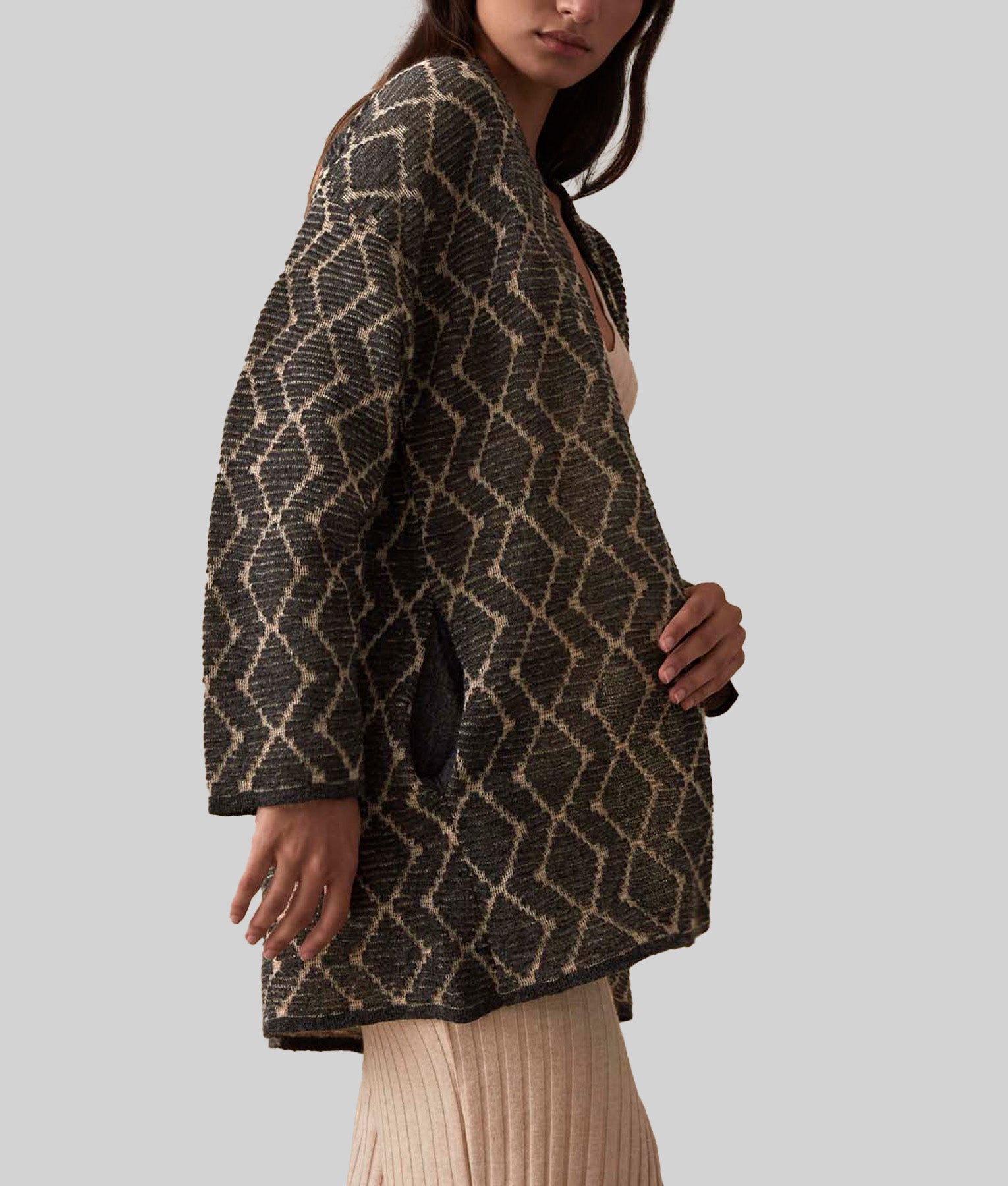 Cardigan Largo Con Bolsillos - Caviar Y Dia Lluvioso