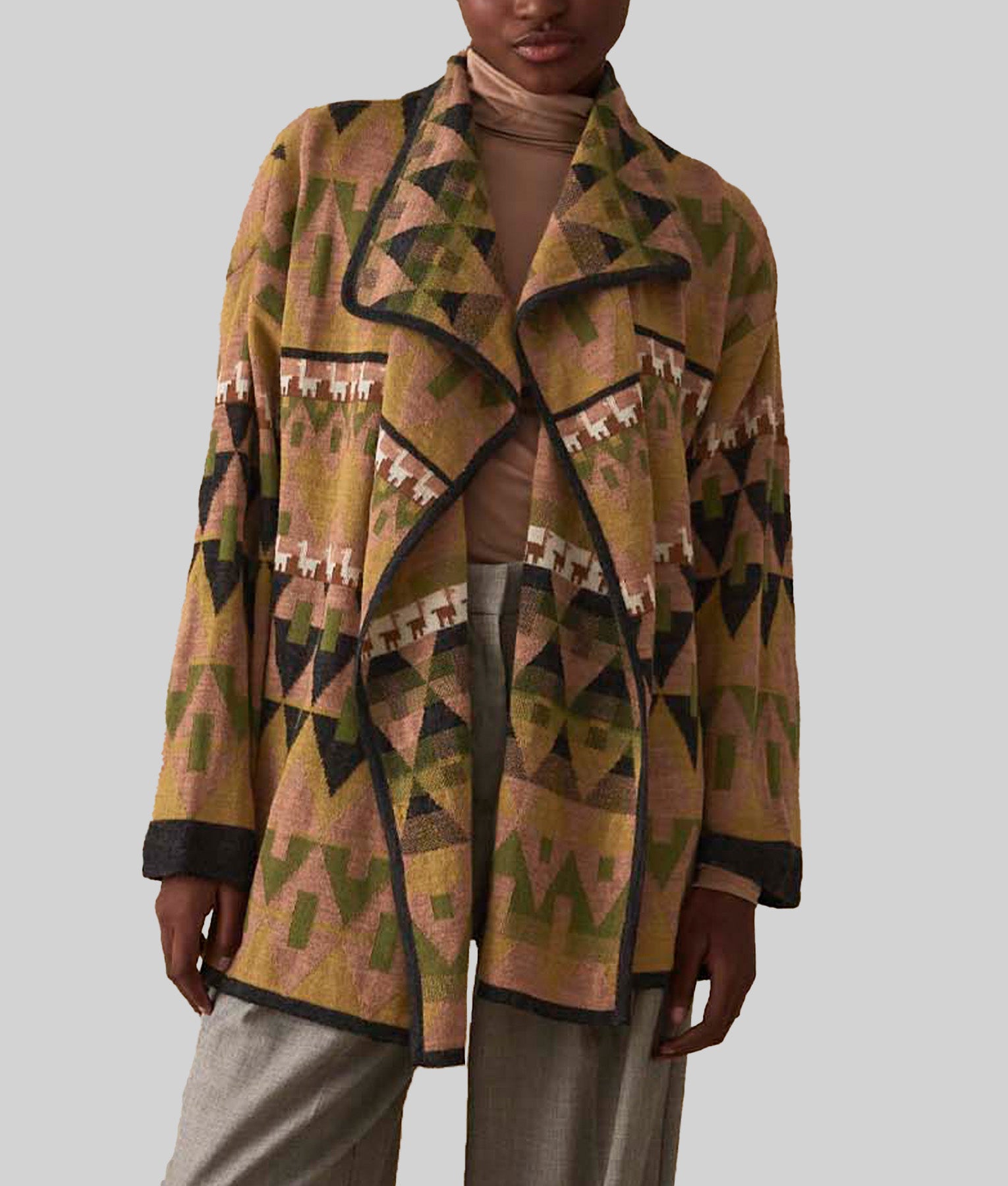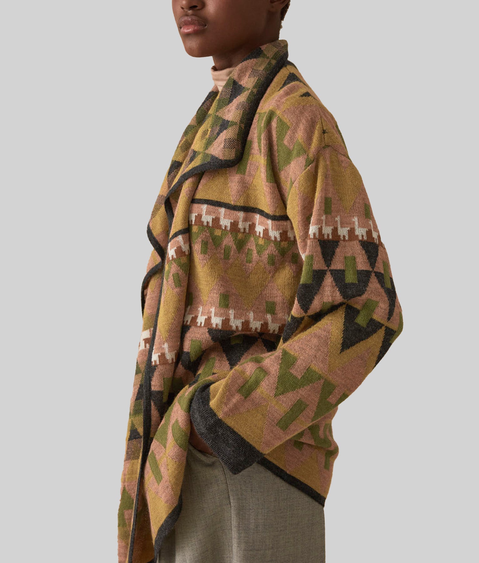 Cardigan Largo Reversible - Coral Polvoriento Y Negro