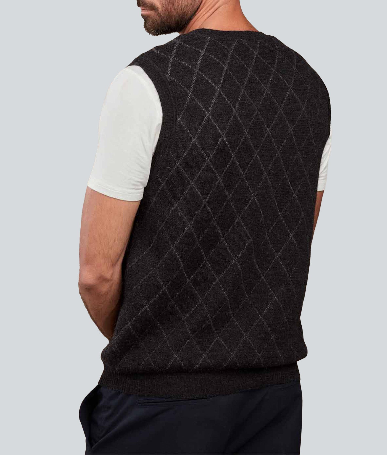 Chaleco confeccionado en 100% Baby Alpaca. Tejido suave, cómodo y de alta calidad. Diseño elegante y formal, versátil para diferentes ocasiones. Elaborado en Perú bajo un enfoque de moda sostenible.
