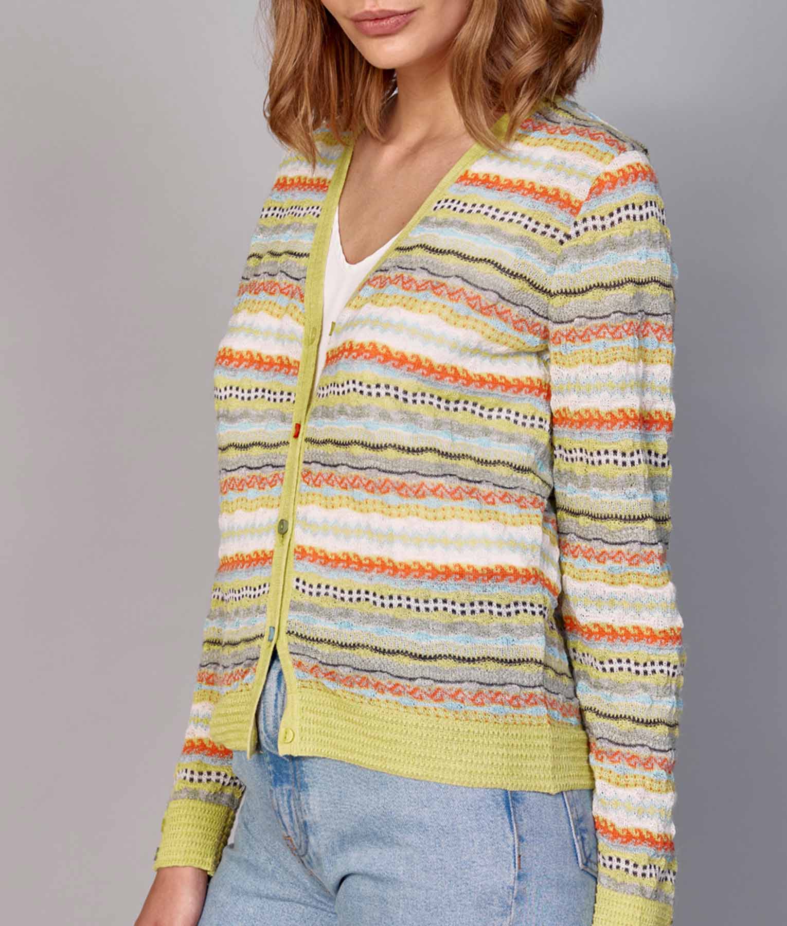 Cárdigan antiguo y nuevo con botones frontales.